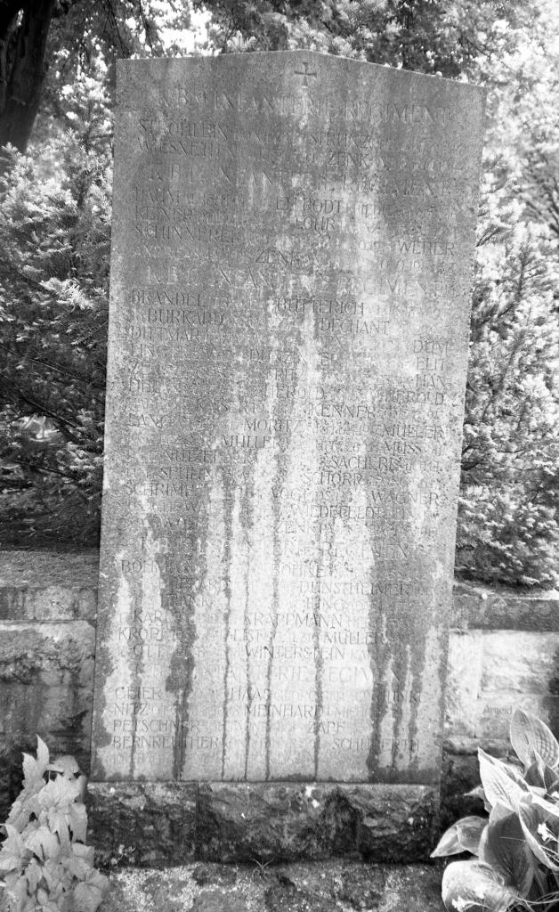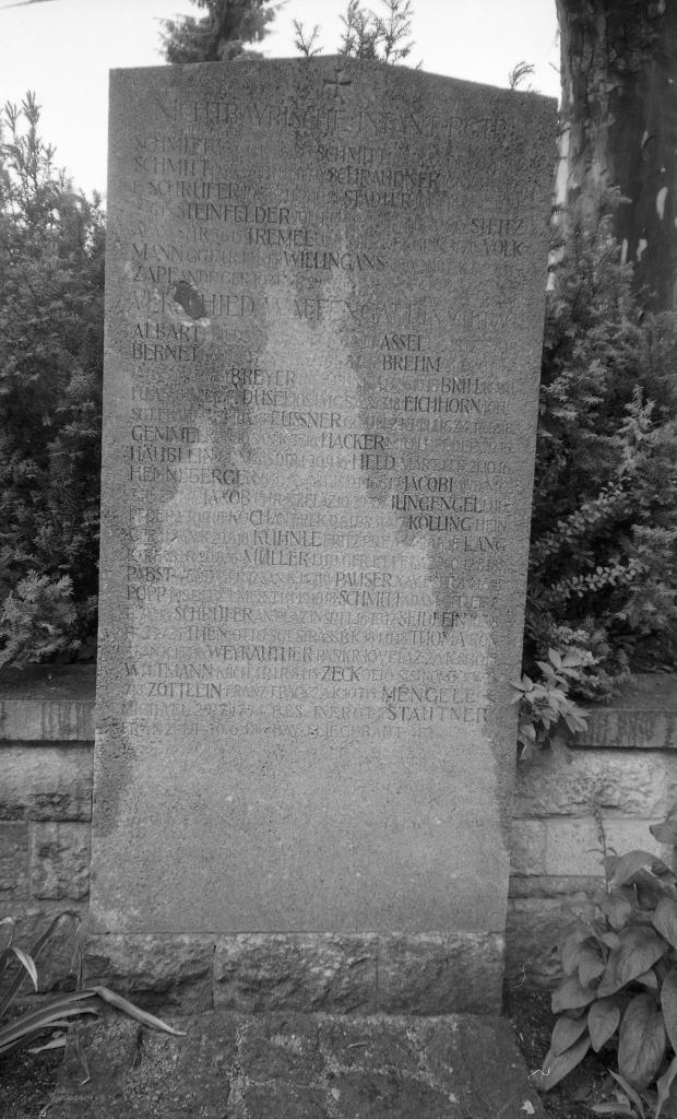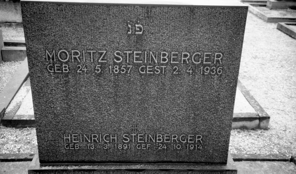 Auf dem Grabstein von Moritz Steinberger geb. 24.5.1857 gest. 2.4.1936 wird unter einem eisernen Kreuz auch des gefallenen Sohnes gedacht: