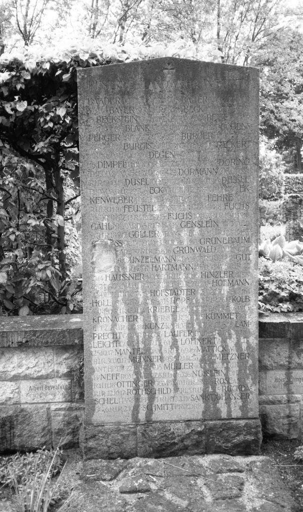 In der Anlage, die nach dem Zweiten Weltkrieg als Gedenkstätte für die Toten beider Weltkriege dient, finden sich unter den verschiedenen Einheiten die Namen der folgenden jüdischen Gefallenen: