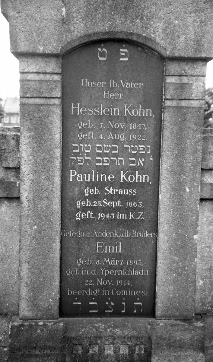 Unser lb. Vater Herr Hesslein Kohn, geb. 7. Nov. 1847, gest 4. Aug. 1922, darunter