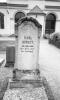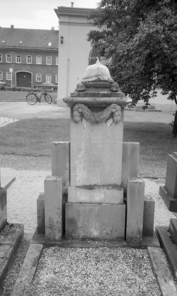 (unter einer Pickelhaube an der Spitze des Grabsteins: