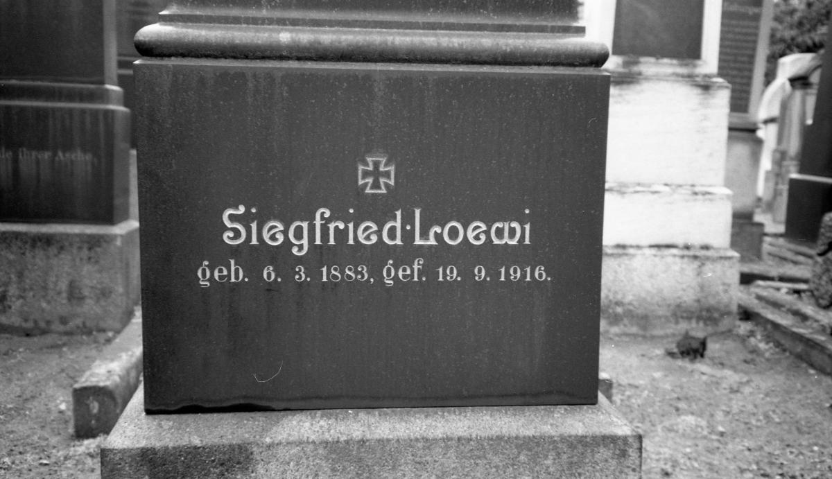 Auf dem Sockel des Grabsteins von Herrn Simon Loewi ist unter einem Eisernen Kreuz zu lesen: