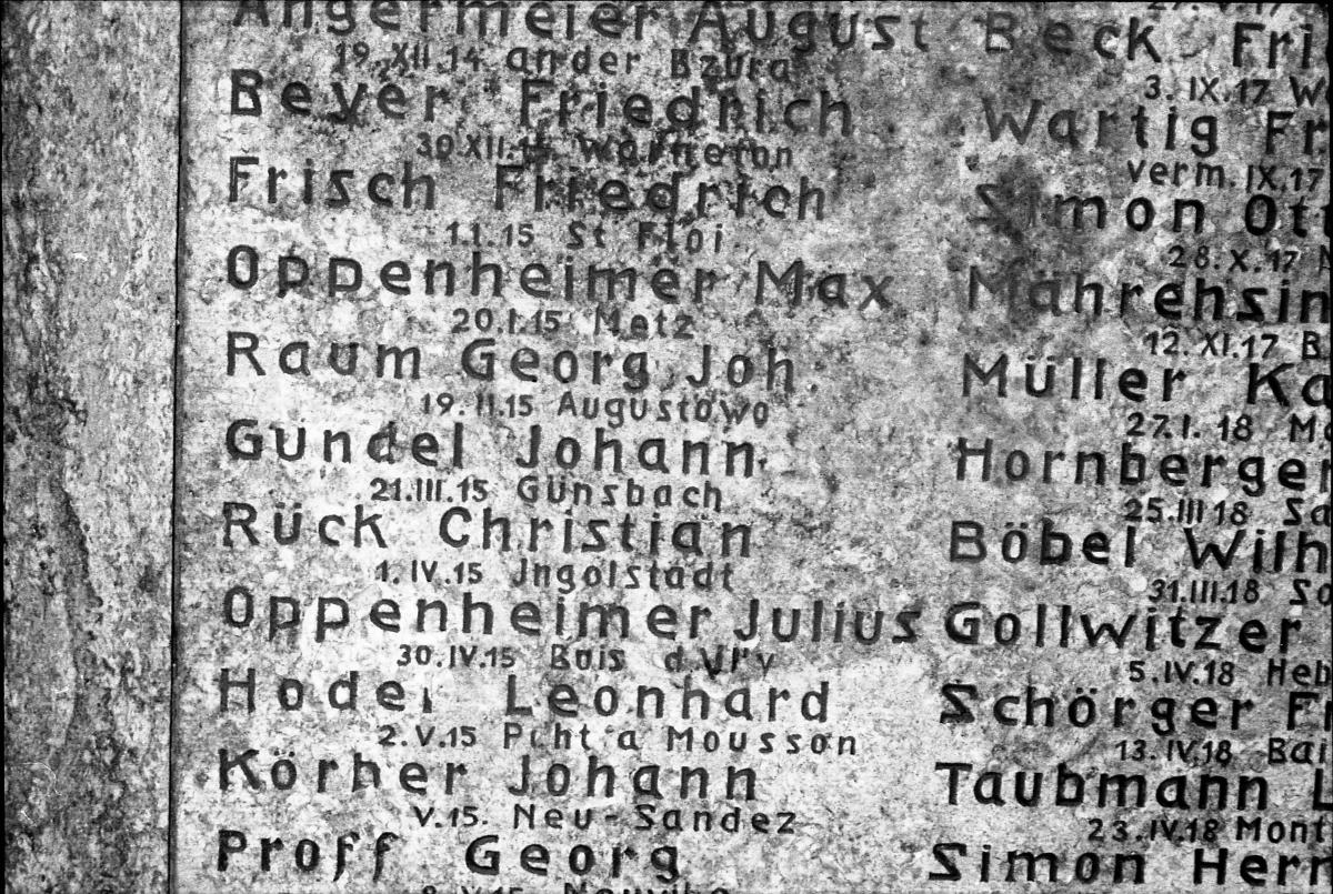 Hier sind die Namen der Gefallenen aufgelistet, darunter auch die der beiden jüdischen deutschen Soldaten