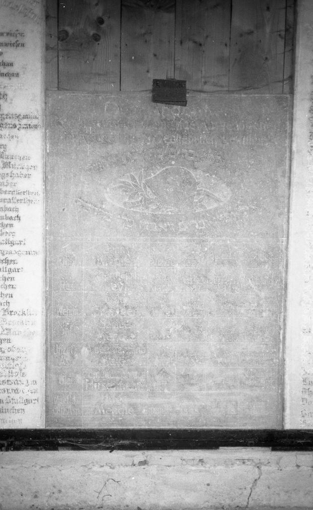 Unter einem Stahlhelm ist auf der Steintafel die folgende Widmung zu lesen: Dem Andenken der aus unserer Gemeinde Ausgezogenen im Kriege 1914–18 Gebliebenen gewidmet. Es folgen dann Namen und weitere Angaben über die Kriegstoten: