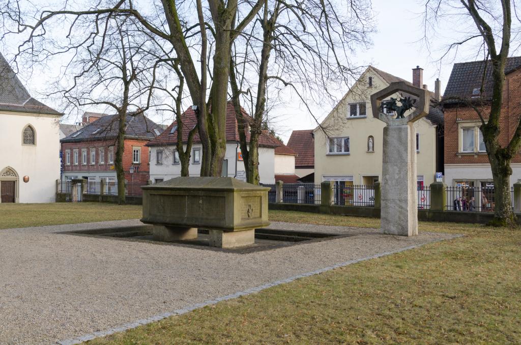In Haßfurt befindet sich am städtischen Friedhof an der Südseite der „Ritterkapelle" das Kriegerdenkmal für die Gefallenen des Ersten Weltkrieges in Form eines großen Sarkophags. Neben der Überschrift SEINEN * TAPFEREN SÖHNEN DIE * IHR LEBEN GABEN FÜR * DIE HEIMAT * IM WELTKRIEG 1914 – 1918 auf der Schmalseite der Gedenkstätte kann man auf der der Kapelle zugewandten Seite die Namen der folgenden jüdischen Gefallenen erkennen: