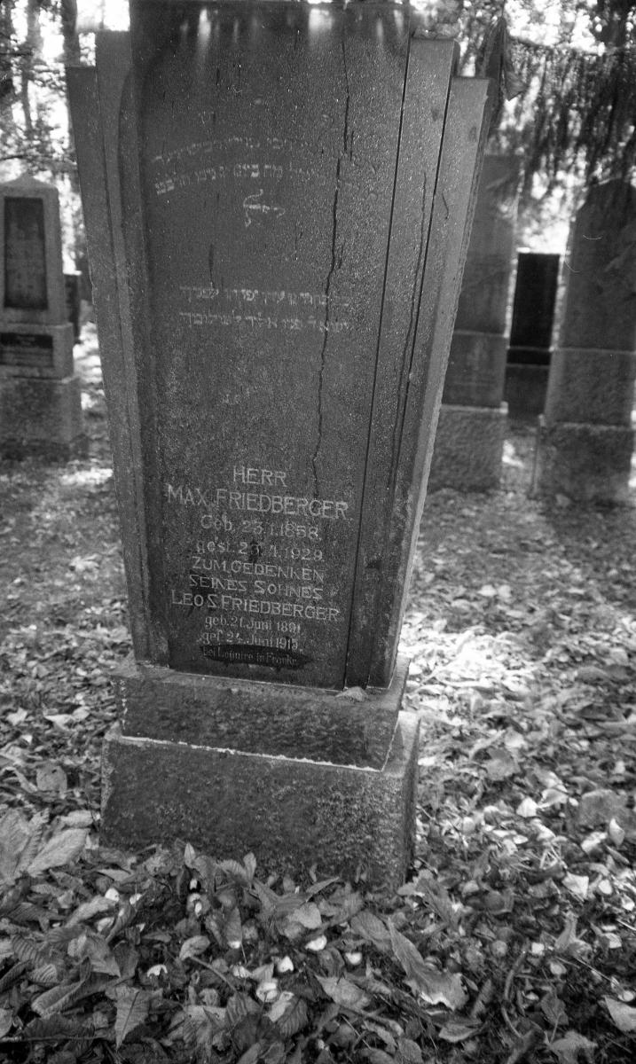Auf einem weiteren Grabstein für Herrn MAX FRIEDBERGER geb. 23.1.1858 gest. 23.4.1929 heißt es: