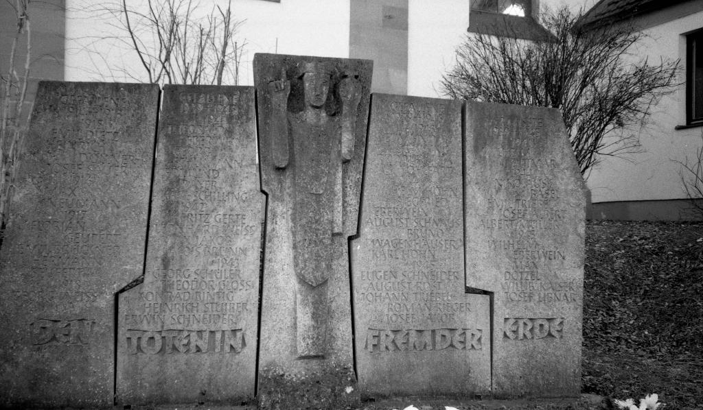 Am Sockel ist die Widmung DEN TOTEN FREMDER ERDE zu lesen.