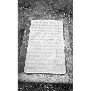 Um ein stilisiertes Kreuz herum sind mehrere Metallplatten am Boden installiert, in denen die Namen der Gefallenen der drei Kriege verewigt sind. Auf der äußersten rechten Platte kann man unter der Überschrift GEFALLENE 1914/18 die Namen der folgenden jüdischen Soldaten erkennen: