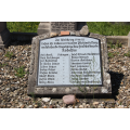 Eine Tafel vor den fünf Grabsteinen lokaler Kriegstoter erinnert an alle Gefallenen aus dem Bereich des Bezirksfriedhofs Rödelsee: