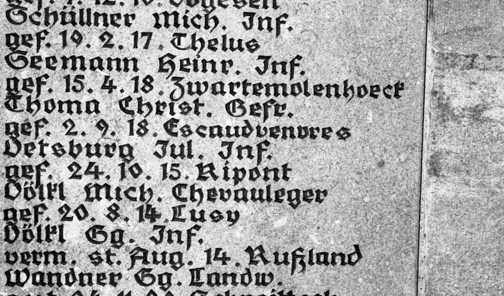 Zur ewigen Erinnerung an die im Weltkrieg 1914/18 auf dem Felde der Ehre gefallenen Söhne der israelitischen Gemeinde Schnaittach.