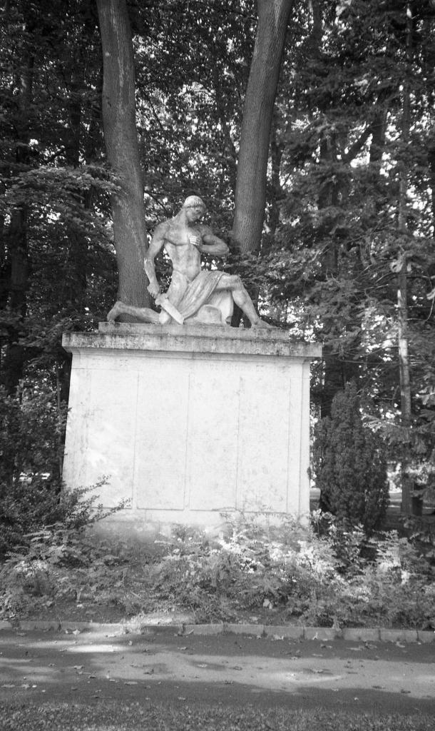 Unter der Skulptur eines Kriegers mit zerbrochenem Schwert und der darunter stehenden Widmung + 1914 + Zum ehrenden Gedächtnis + 1918 + sind die (relativ schwer lesbaren) Namen der Kriegstoten des Ersten Weltkrieges aufgelistet, darunter auch der des jüdischen deutschen Soldaten UCKMO MOSES.