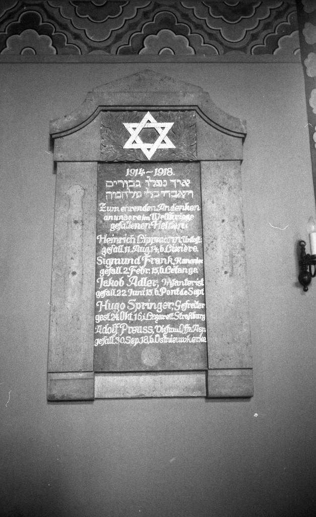 Unter einem großen Davidstern und der Widmung:1914 – 1918 Zum ehrenden Gedenken an unsere im Kriege gefallenen Helden