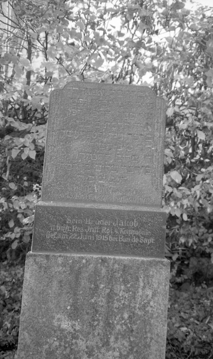 An der linken Seitenwand der Synagoge der Israelitischen Kultusgemeinde Straubing in der Wittelbacher Straße 2 befindet sich das jüdische Ehrenmal für die Gefallenen der Gemeinde. Im Ehrenmal der Stadt Straubing wird heute ebenfalls den jüdischen Kriegstoten gedacht, und auf dem jüdischen Kriegstoten ist der Grabstein eines Soldaten der Westfront erhalten.