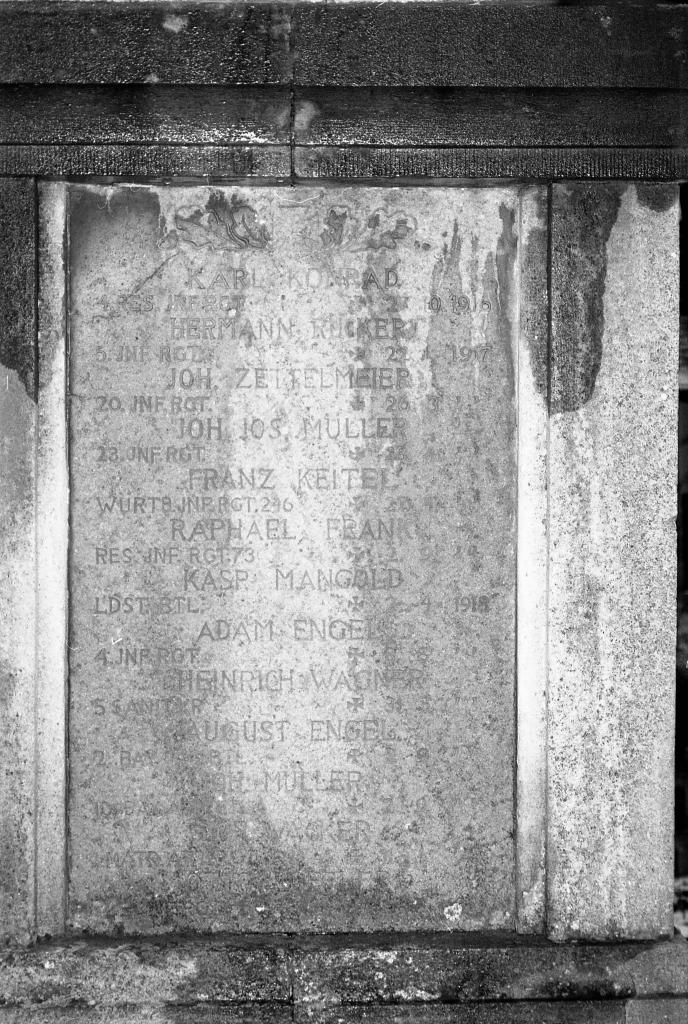 In Westheim, heute ein Ortsteil von Knetzgau, steht in der Ortsmitte ein Kriegerdenkmal für die Gefallenen beider Weltkriege. Auf der Vorderseite des Denkmals für die Toten des Ersten Weltkrieges steht die Widmung: DEM GEDENKEN DER GEFALLENEN HELDEN 1914 – 1918 DIE DANKBARE GEMEINDE WESTHEIM. Auf beiden Seiten des Denkmals sind die Namen der gefallenen aufgeführt, unter ihnen die der jüdischen Kriegstoten: