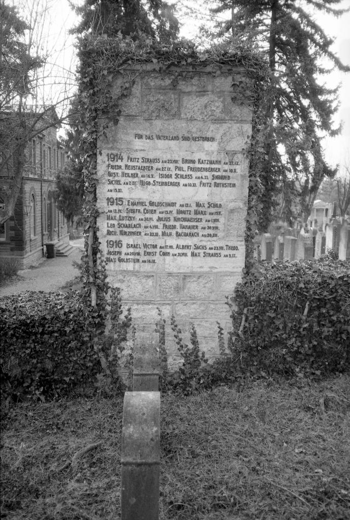 Auf dem jüdischen Friedhof von Würzburg befindet sich rechts vom Eingang ein Ehrenhain mit einem Denkmal und Ehrengräbern. Mit ihnen wird sowohl den Kriegstoten des Ersten Weltkrieges, aber auch den Opfern des NS-Regimes gedacht.