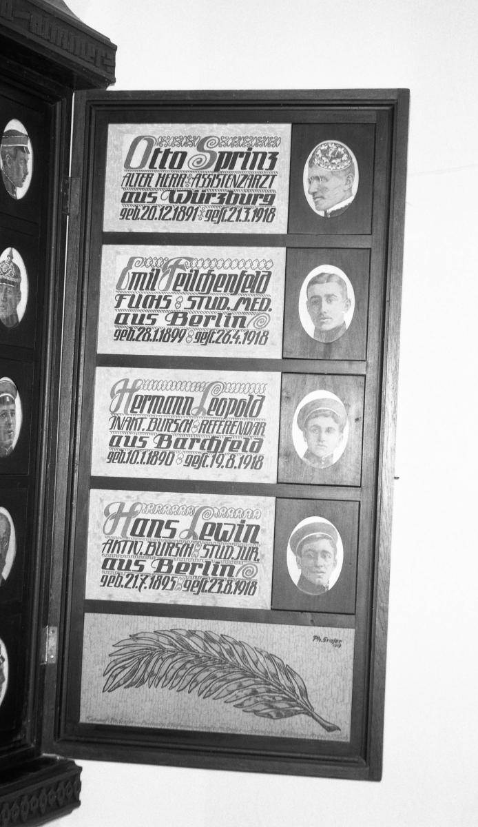Im Taharahaus steht zusätzlich eine dreiflügelige Ehrentafel der jüdischen Studentenvereinigung "Salia", die dort ihren im Krieg gefallenen Mitgliedern gedenkt.