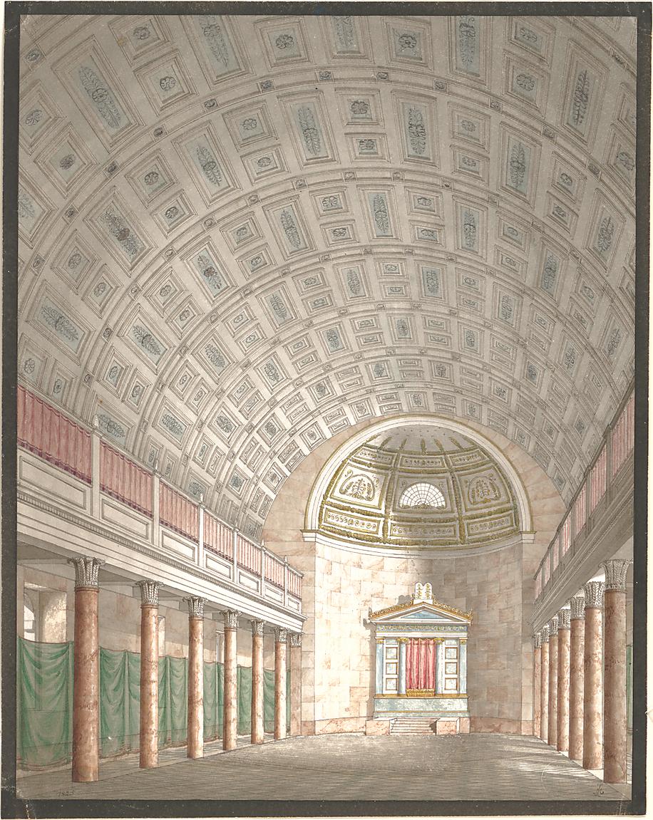 Ihre staatlich garantierte Stellung als öffentlich-rechtliche Körperschaft äußerte sich auch in einem repräsentativen neuen Gotteshaus. Der Grundstein für die diese klassizistische Synagoge wurde 1824 unter König Max I. Joseph gelegt, zur Einweihung am 21. April 1826 kamen sein Nachfolger Ludwig I. (reg. 1825-1848) und seine Gemahlin, Königin Therese. Den Eröffnungsgottesdienst hielt der neu gewählte Rabbiner Hirsch Aub (1796-1875), der die Gemeinde mehr als 45 Jahre lang umsichtig leiten sollte und erste vorsichtige Reformen einleitete.