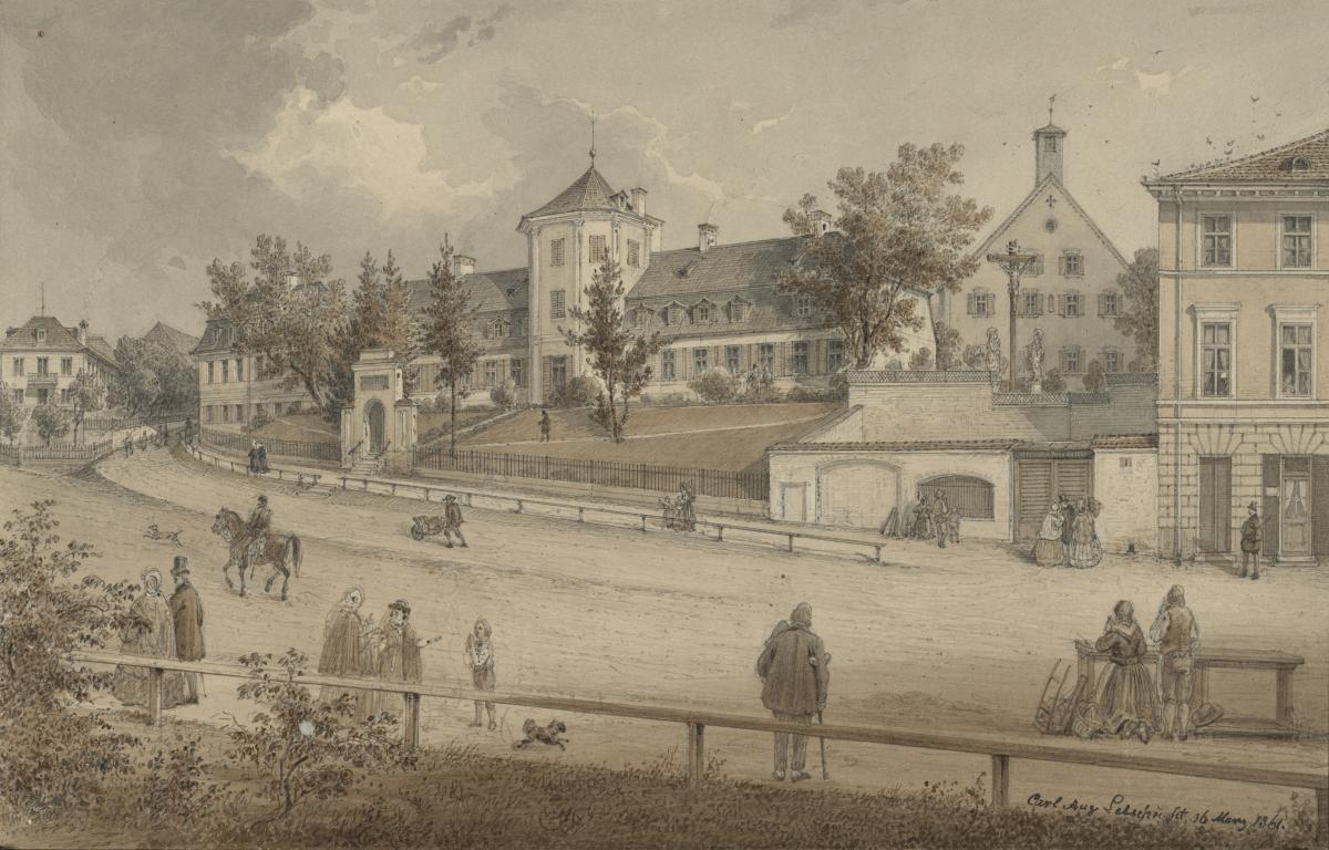Nachdem Ihr mit ernstlichem Verweis seines so frechen Unternehmens auf angeführte Weise mit ihm verfahren seid, sollen diese Strafgelder aber, wie Wir es gnädigst [zum frommen Nutzen] zur Errichtung der Marmorbilder und -stiegen beim Bildnis des gekreuzigten Christus gegenüber dem sogenannten Gasteig bewilligt haben, dem hiesigen Postmeister Prüxen vollständig ausgehändigt werden.
