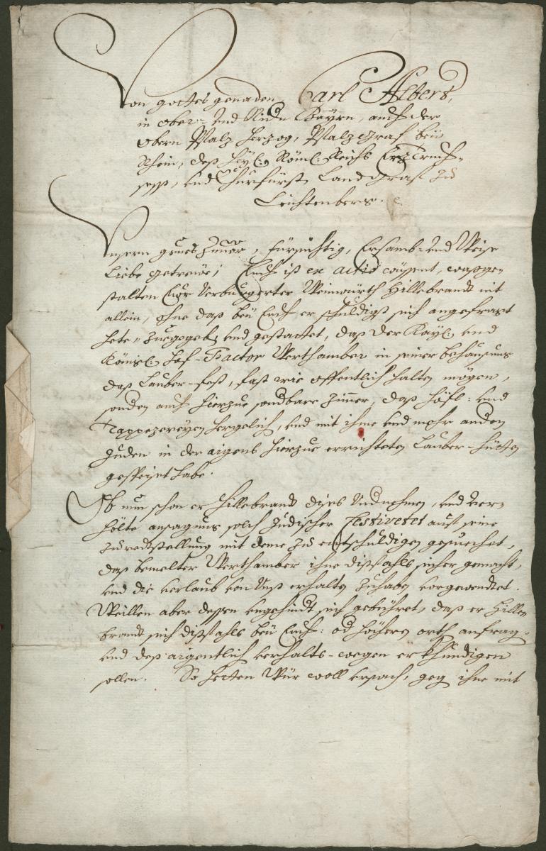 [Seite 1] Von Gottes Gnaden Carl Albert, in Ober- vnd Nidern Bayrn, auch der Obern Pfalz Herzog, Pfalzgraf beü Rhein, deß heyl. Röm. Reichs Erztruchsess, und Churfürst, Landgraf zu Leichtenberg etc.