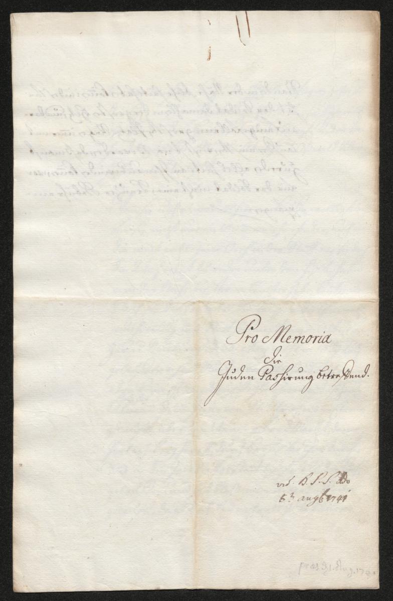 /- Ungültige Media Datei -/Denkschrift (Promemoria) des Augsburger Stadtmilitärs über den tageweisen Aufenthalt jüdischer Händler und deren Gebahren gegenüber den Stadtsoldaten, August (?) 1741. Stadtarchiv Augsburg, Reichsstadt, Judenakten Fasz. 15, IV, Nr. 69.