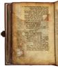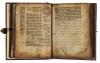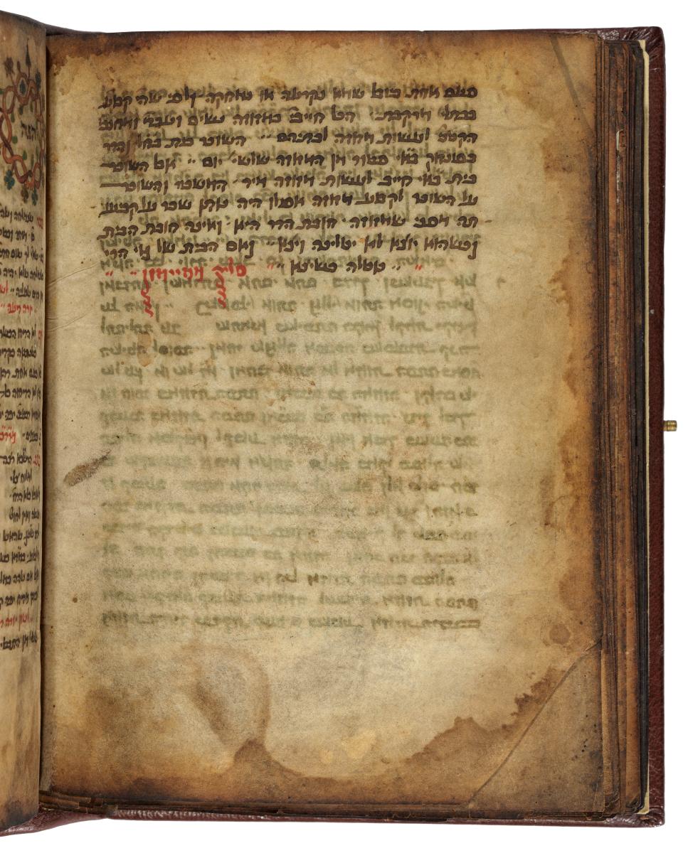 "Bamberger Siddur" aus Dormitz. Hebräisches Gebetbuch mit Anmerkungen zur Liturgie und religiösen Vorschriften. Aus der Synagoge Dormitz, Tusche auf Ziegenhaut, Ende 16. Jahrhundert. Einband ergänzt 1993. Staatsbibliothek Bamberg Msc.Add.43.