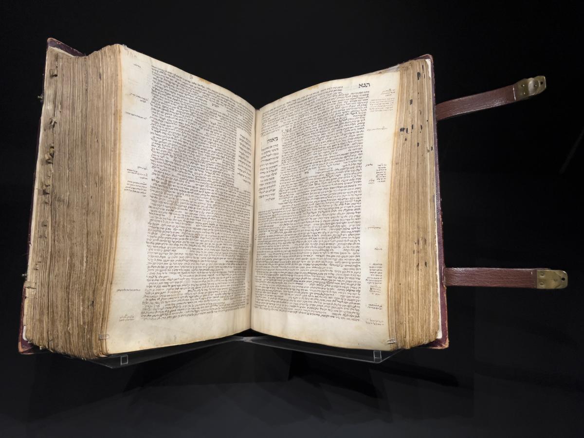Der "Babylonische Talmud" (hebr. Talmud Babli), auch "Pferseer Handschrift" genannt, wurde wohl um 1342 in Frankreich hergestellt. Vereinzelte Glossen (Einfügungen an den Seitenrändern) enthalten unter anderem einen Kommentar des Rabbiners Schlomo ben Jizchak aus Troyes (1040-1105). Als einzige bislang bekannte mittelalterliche Handschrift enthält sie den fast vollständigen Text des Babylonischen Talmuds.