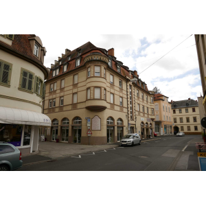 Urkundlich greifbar wird eine Synagoge in der Saalestadt erstmals um 1700. Sie befand sich in unmittelbarer Nähe des Erthal´schen Judenhofs am westlichen Ende der Bachgasse. Bei ihr handelte es sich nicht um einen originären Synagogenbau, sondern um ein bereits bestehendes Wohnhaus, das die jüdische Gemeinde von Jörg Dernbach 1700 für 25 fränkische Gulden erworben und für weitere 85 Gulden umgebaut hatte.