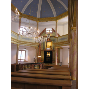 Die Gottesdienste wurde zunächst im Haus des Moses Hirsch gefeiert. Ende des 17. Jh. entstand ein weiterer Betsaal im Anwesen des Isaac Ploch, der mit seinen Leuten den zuerst eingerichteten Betraum sabotierte. Der Streit musste schließlich von der Regierung in Sulzbach entschieden werden; bis 1720 fanden die Gottesdienste nur im Haus des Moses Hirsch statt. Pfalzgraf Theodor Eustach genehmigte den Juden in Floß 1719 die Errichtung eines Synagogenbaus, der 1721/22 vollendet wurde: Ein Holzhaus auf steinernen Grundmauern, das am Rand des Judenberges, wohl unterhalb der späteren Judengasse, stand. Die Synagoge verfügte über 27 Männer- und 27 Frauenstände. Nachdem die Kultusgemeinde stark angewachsen war, erweiterte man die Ausstattung im Jahr 1780 mit elf Männer- und 19 Frauenbetstühlen.