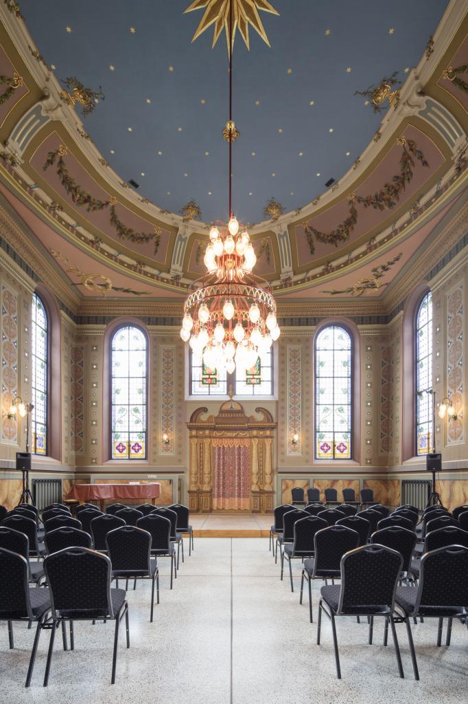 Das Innere des Neubaus hatte einen prachtvolle Stuck und reiche ornamentaler Dekoration im frühklassizistischen Stil, die Ausstattung war aufwendig und hochwertig. Eine Restaurierung der Synagoge und Umgestaltung des Betraums fiel 1852/53 und noch einmal 1896 an. Im Novemberpogrom (9./.10.11.1938) entwendeten Nationalsozialisten wertvolle Teile der Inneneinrichtung und zerstörten den Rest vollständig. Das Abbrennen des Gebäudes unterblieb nur wegen der Gefahr für die umliegenden Wohnhäuser verhindert. Am nächsten Tag wurden die Jüdinnen und Juden gezwungen, die zertrümmerte Ausstattung auf Lastwagen zu verladen. Danach wurde der Sakralbau von den Machthabern beschlagnahmt. Erst ab März 1939 erlaubte die Kreisverwaltung wieder jüdische Gottesdienstfeiern, die im Schulsaal der Kultusgemeinde stattfanden. Während des Zweiten Weltkriegs wurde die ehemalige Synagoge als Lagerraum benutzt.