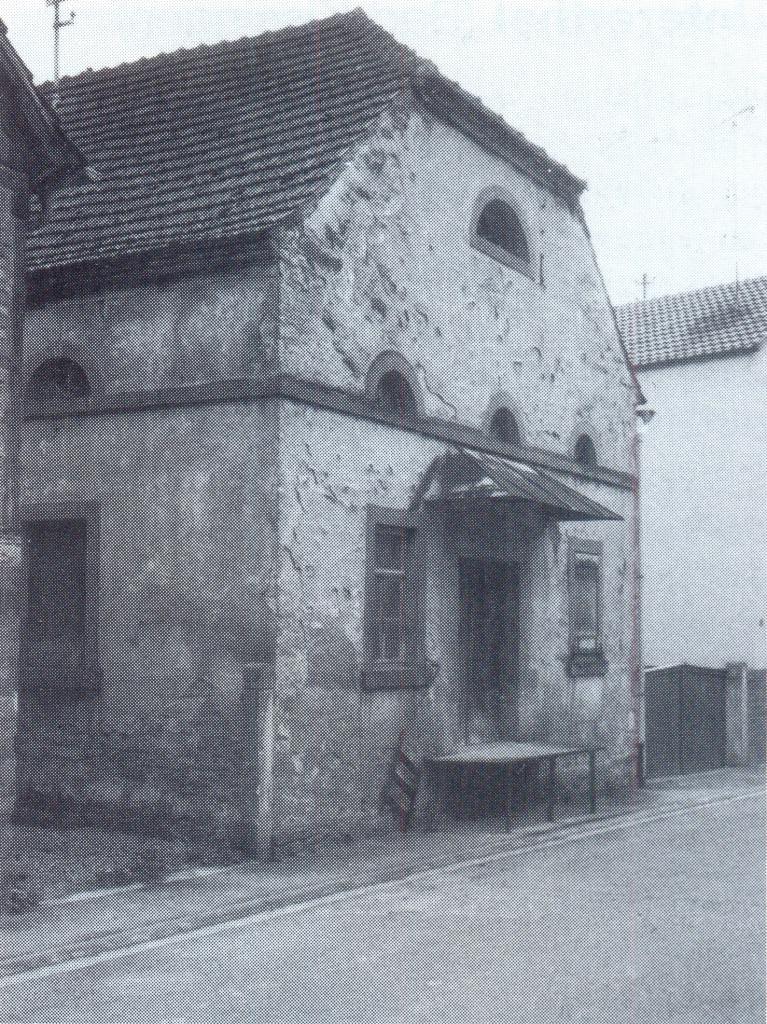 Die jüdische Gemeinde besaß am südlichen Ortsrand eine aus dem 18. Jahrhundert stammende Synagoge (Plan-Nr. 87, heute: Brunnenstraße 13). Es handelte sich um einen kleinen, rechteckigen Sakralbau mit Tora-Erker. Dieses Gebäude brannte bei einem Großfeuer im Herbst 1838 nieder. Bis um 1841 entstrand ein neuer, größerer Mehrzweckbau auf dem Grundstück der Vorgängersynagoge. Er war massiv gebaut über rechteckigem Grundriss, hatte wie die Oberaltertheimer Synagoge ein Halbwalmdach und verfügte über einen zweigeschossigen quadratischen Betsaal mit Frauenempore (44 Männer- und 22 Frauenplätze), eine Lehrerwohnung, eine Mikwe im Erdgeschoss und im ersten Stock ein Schulzimmer, in dem 20 Kinder Platz hatten. Fast 100 Jahre lang bildete dieses Gebäude den religiösen Mittelpunkt der Kultusgemeinde.
