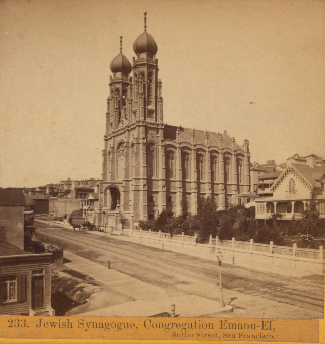 Gemeindevorstand Louis Sachs aus Bayern legte den Grundstein für eine neue Synagoge. Die Silhouette des neugotisch-maurischen Bauwerks ähnelte der Münchner Frauenkirche. Zu seiner Einweihung im Jahr 1866 wurde der "Sutter Street Temple" als eines der schönsten religiösen Bauwerke in Kalifornien gerühmt. Die erste Eheschließung war jene des Schwaben Benedict Feigenbaum, der 1866 Hannah Löwenthal aus Frankfurt heiratete.