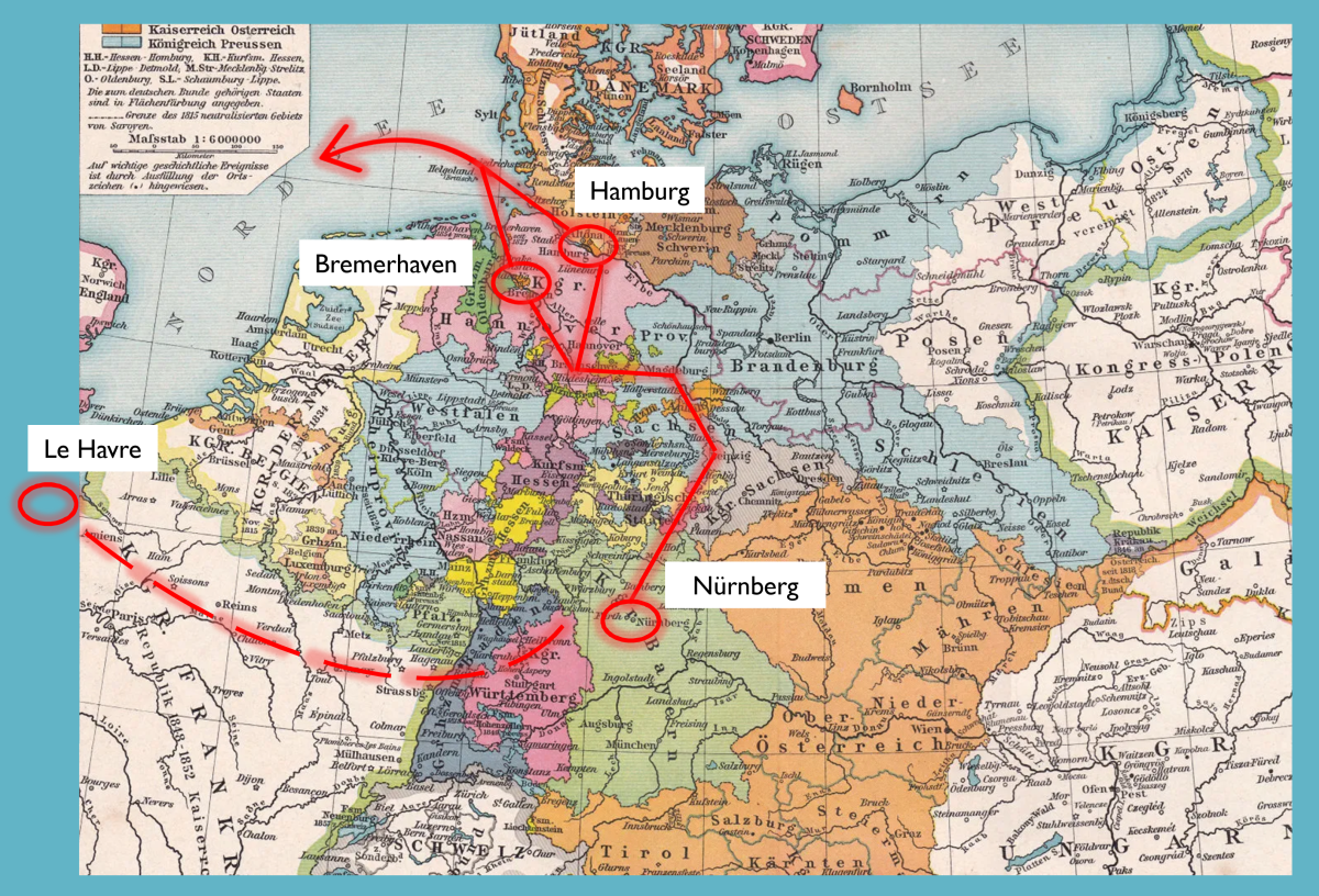 Nachdem sich die ersten Pioniere in den Vereinigten Staaten etabliert hatten, organisierten sie Hilfe für Jüdinnen und Juden in der alten Heimat. Dieses Netzwerk beförderte eine Nachfolgewanderung, wenn mehrere Generationen nach und nach die Reise über den Atlantik antraten. Die bevorzugten Häfen waren Le Havre, später Bremen und Hamburg.