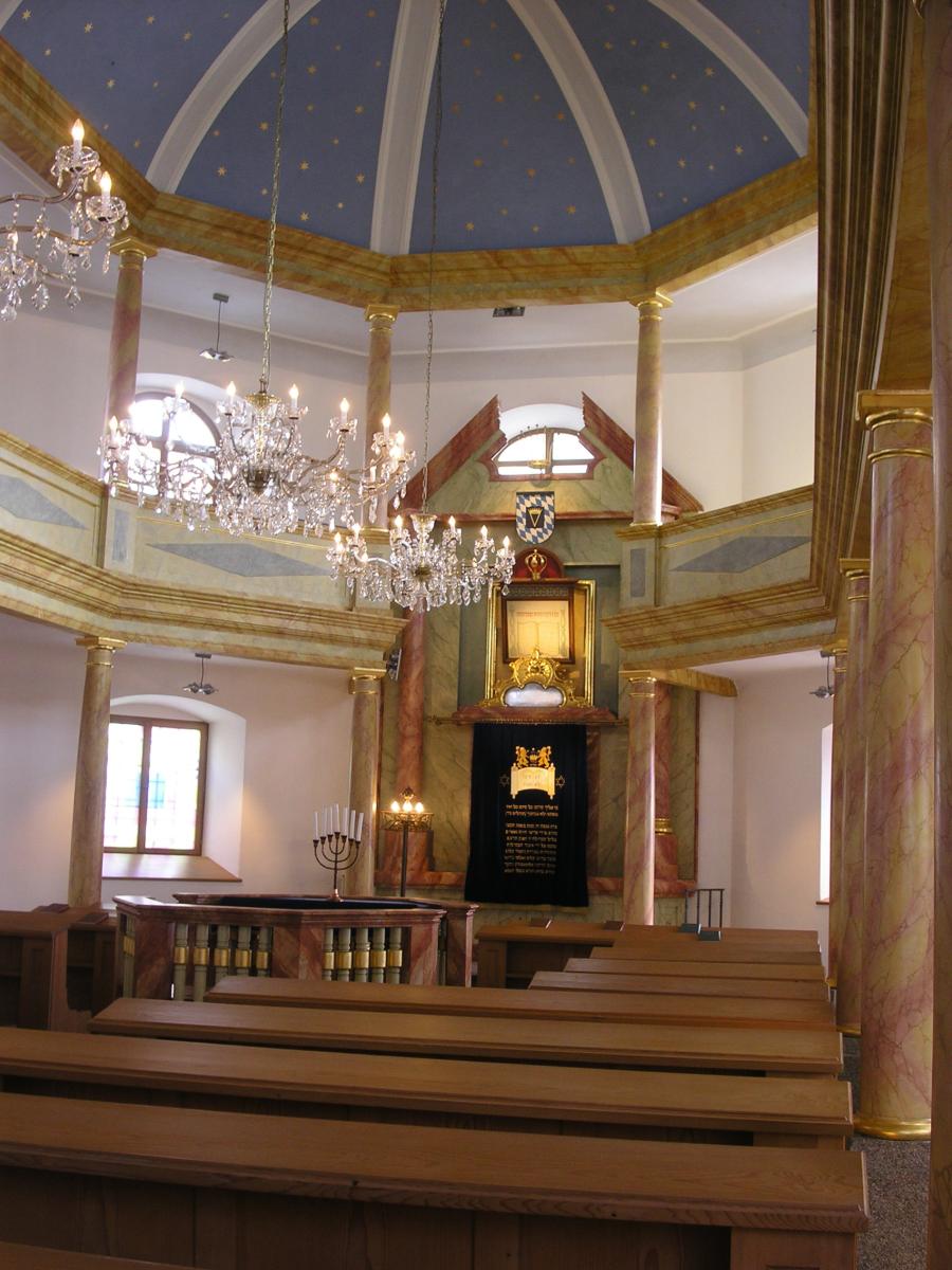 Im 18. Jahrhundert begann sich der Stil neu erbauter Synagogen zu verändern: Zunehmend legten Grund- und Landesherren Wert darauf, dass auch die jüdischen Gotteshäuser zu ihrem Ansehen beitrugen. Ein Beispiel ist die Komturei der Deutschordensritter zu Ellingen, wo Hofbaumeister Franz Joseph Roth (1690–1758) einen Betsaal im Anwesen von Löw Amson stuckatierte und mit religiösen Deckenmalereien ausstattete.