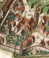 Klosteranlage 1626, Ausschnitt aus dem für den Steuerumgang bearbeiteten Stadtplan von Wolfgang Kilian, wahrscheinlich 1660