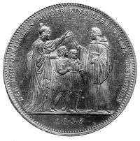 Vorderseite: König Ludwig I. von Bayern Rückseite: Die Göttin Minerva übergibt einem Benediktiner zwei Kinder zur Erziehung