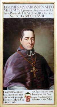 Joseph Maria von Fraunberg entstammte einem alten bayerischen Adelsgeschlecht. Seit 1783 im Domkapitel zu Regensburg, machte er schon während der Säkularisationszeit Karriere im bayerischen Schuldienst. Obwohl seine Nähe zu Montgelas das Misstrauen kirchlicher Kreise weckte, wurde er 1821 zum Bischof von Augsburg geweiht. Der Verwaltungsfachmann schuf die organisatorischen Grundlagen des neuen Bistums. Seine Amtszeit endete 1824 mit der Berufung zum Erzbischof von Bamberg.