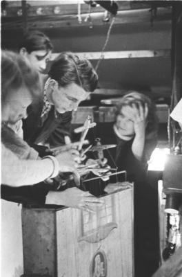 Marionettenspieler des Marionettentheaters an der Blumenstraße in München, Fotografie: 1946.