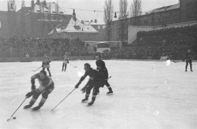 Eishockeyspiel im Prinzregentenstadion in München, Fotografie, 1946.