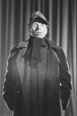 Porträt eines Schauspielers während einer Aufführung in der Münchner Schaubude, Fotografie: 19.4.1947.