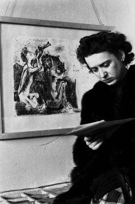 Besucherin vor einem Werk der Picasso-Ausstellung in der Galerie Günter Franke in München, Fotografie, März 1948.