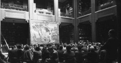 Ausstellung 'Kunstschaffen in Deutschland' im 'Central Art Collecting Point', dem heutigen Lesesaal des Zentralinstitutes für Kunstgeschichte in München, Fotografie: 22.6.1949.