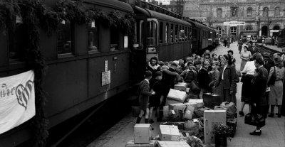 Rückreise der letzten 100 Berliner Kinder vom Münchner Hauptbahnhof (Ende einer Hilfsaktion der Arbeiterwohlfahrt während der Berliner Blockade), Fotografie, 29.08.1949.