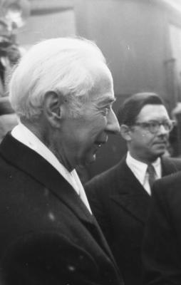 Bundespräsident Dr. Theodor Heuß bei einem Empfang in München, Fotografie: 6.10.1949.