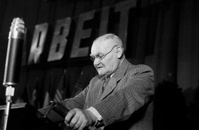 Hans Böckler auf dem Gründungskongress des Deutschen Gewerkschaftsbundes im Deutschen Museum in München, Fotografie: 12.10.1949.