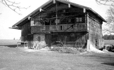 Bäuerliches Kleinhaus in Eckelsberg bei Simbach: Blockbauweise mit giebelseitigem Balusterbalkon, Fotografie: 1943 (?).