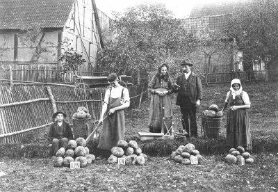 Düngungsversuch bei Runkelrüben auf Sandboden von Landwirt Erhard Manger, Waldfenster (Burkardroth; Lkr. Bad Kissingen, Unterfranken), Fotografie: Herbst 1906.