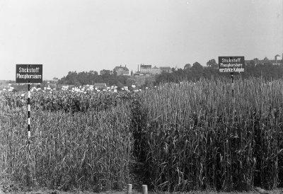 Düngunsversuch bei Winter-Weizen durch das Agrikulturchemische Institut, Weihenstephan Lkr. Freising (Oby.), Fotografie: 13.7.1941.