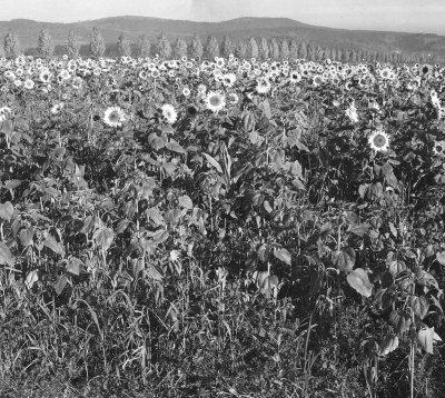 Stoppel-Zwischenfruchtgemenge mit Sonnenblumen, Grünmais, Wicken, Hafer und Futtererbsen auf humosen, sandigem Lehmboden, in Giffa/Wörth a.d. Donau, Fotografie: 18.10.1969.
