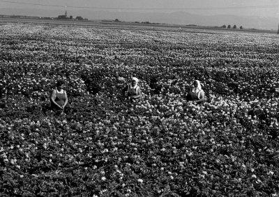 Arbeiterinnen bei der Bestäubung von Kartoffelblüten zur Kombinationszüchtung neuer Kartoffelsorten in der Saatzuchtwirtschaft Johann Firlbeck in Rinkam (Lkr. Straubing), Fotografie: 8.7.1971.
