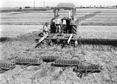Stoppelfeldbearbeitung mit einem 'Tiefgrubber' und einer fünfteiligen Ringelwalze bei Senator Richard Koch, Präsident des BBV, Niedertraubling im Landkreis Regensburg. Fotografie: 16.8.1974.
