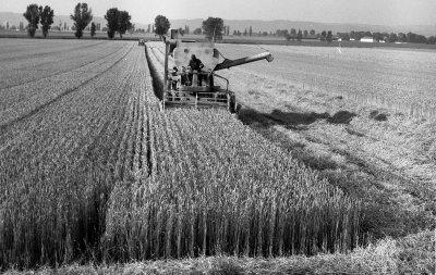 Getreideernte der Sorte 'Benno' Superelite-Vorstufe. Züchter: Saatzuchtwirtschaft Lang-Doerfler in Niedertraubling Lkr. Regensburg, Fotografie: 30.7.1976.